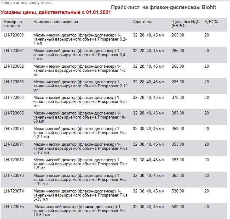 Диапазоны объёма 0,2-60 ml. Как керамический поршень, так и все детали дозатора- диспенсера, соприкасающиеся с жидкостью, обладают высокой химической стойкостью, что обеспечивает широкий спектр областей применения данного устройства.