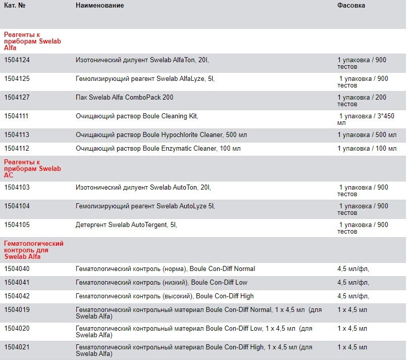 Реагенты для гематологических анализаторов